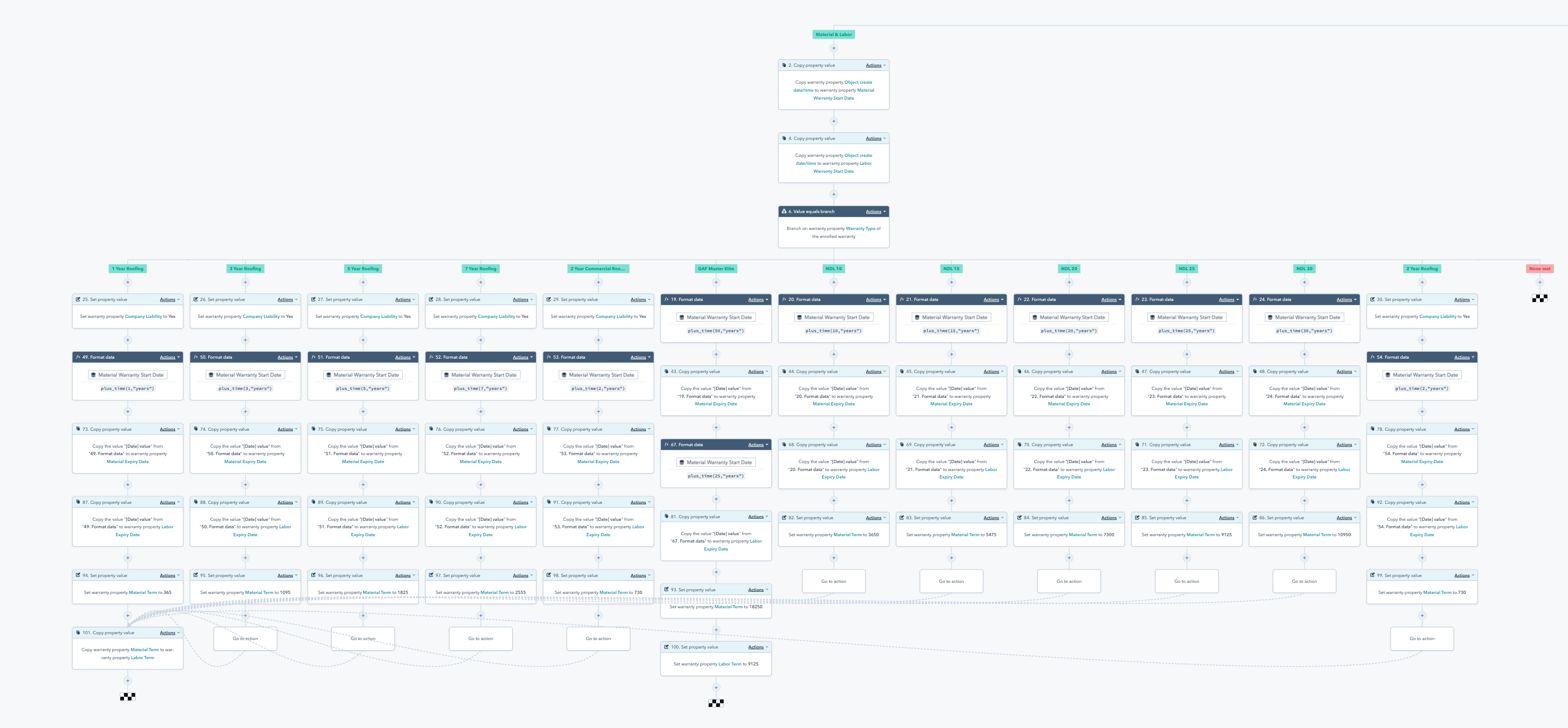 You'll see in the video that this can be a very complicated workflow, as the image below only reflects half of the final automation. The creation of terms for material and labor warranties. The labor portion is about equally as big.
